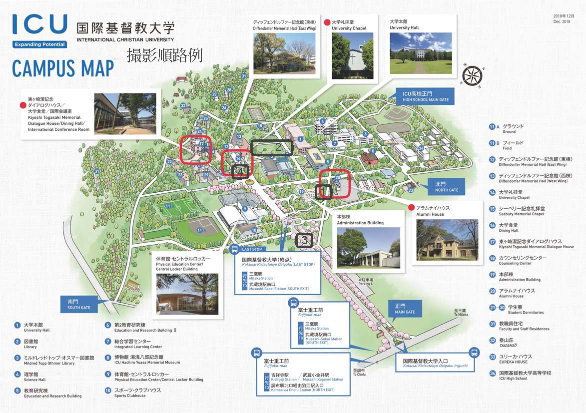 撮影指示書を作成して、ICU国際基督教大学にて思い出深い場所でお二人だけのロケーション撮影を行います。