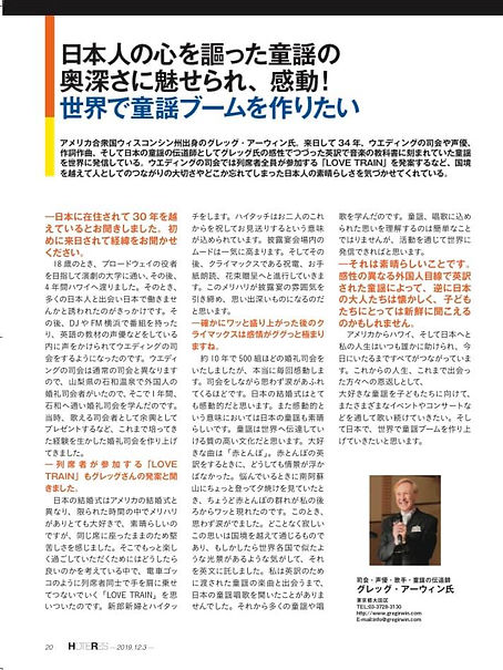日本の童謡の英語翻訳や、テレビ・ラジオ番組、イベント司会、